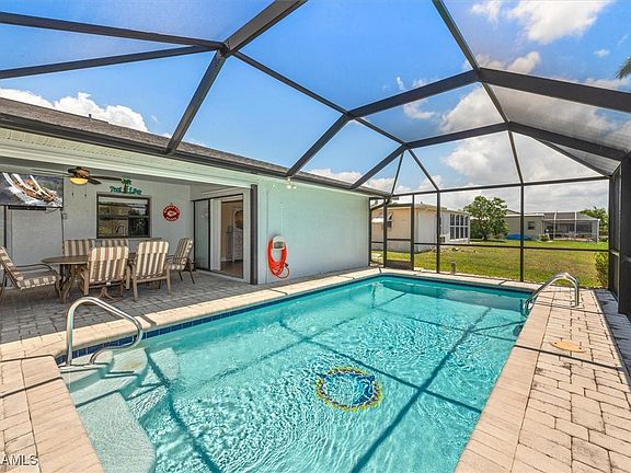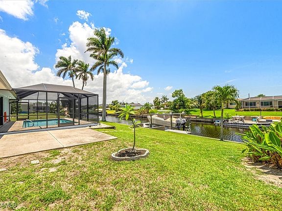 Come and experience the charm of life on the water! This beautifully maintained 3-bedroom, 2-bath home offers Gulf access with a wraparound composite dock, 12,000-lb boat lift, and a short 30 minute ride to open water. Enjoy your own private heated pool and oversized screened lanai, perfect for relaxing or entertaining outdoors year-round. Inside, you’ll find a split floor plan, tile throughout, and a bright, open living space. The kitchen has plenty of cabinet space, and the primary suite includes lanai access and a private bath. Two guest bedrooms offer great flexibility for family or visitors. Not located in a flood zone and all assessments are paid, offering peace of mind and long-term value. Minutes from shopping, dining, and downtown Cape Coral, with easy access to Fort Myers. This home checks all the boxes—schedule your showing today!