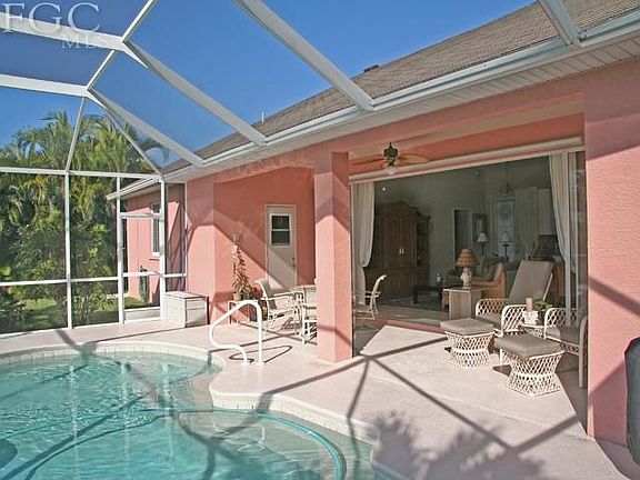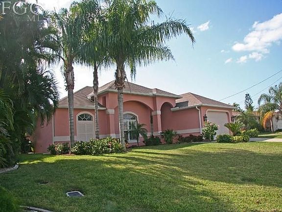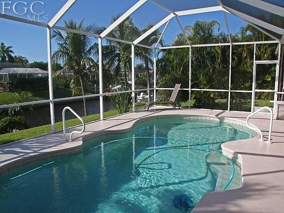 One of a handful of Gulf Access pool homes built after the year 2000 priced under $300k. 20 minutes to the river via the highest bridge in the south Cape-11.25ft. VERY well maintained home, original owners, not a foreclosure or short sale. This home is designed with the Florida lifestyle in mind. Tropical feel is enhanced by the most desired SOUTHERN EXPOSURE which means sunshine on your pool most of the day. True indoor/outdoor living experience offered with this Great Room, split floor plan design. 13.5ft vaulted ceiling and 16ft. pocket sliding doors opens onto your freshly resealed Lanai. Hunter Douglas Plantation shutters on all windows, upgraded tropical fans. Storm panels for lanai sliders & other areas. New carpet in bedrooms, new stove/oven, newer washer & dryer & dishwasher, alarm system, unique flex space for home office use, 18 inch tile. Dock & 10,000lb boat lift, roof gutters all around, A/C serviced 2x per yr. FEMA map indicates not in a flood zone-elevation is 12.1ft.