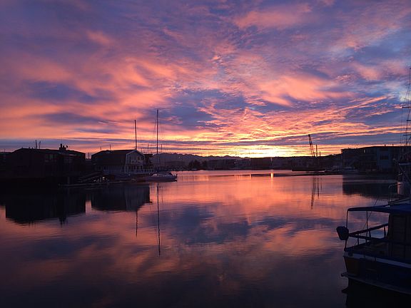 Welcome to the "Richmond Riviera," a peaceful community of waterfront homes in Brickyard Cove. The house is sun-drenched, and the natural light reflects off the Bay in colorful and interesting patterns throughout the day. East-facing front rooms take advantage of the sunrise, and the house is well-sheltered in the cove from the fog and wind, providing easy in and out boat access from the deep-water dock. Enjoy watching the water birds in the cove and occasional egrets fishing from the boat dock.
