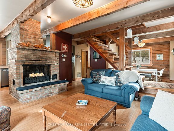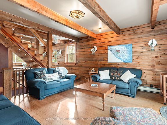 Step out your front door and straight into adventure! This stunning log chalet puts you in the heart of the Haliburton Highlands playground, just a short walk from the slopes, trails, spa, and dining at Sir Sams Ski Area & Inn. Ski all winter, bike all summer, paddle crystal-clear lakes, hike endless trails, and unwind at sandy beaches all within minutes. With every season offering a new way to play, this chalet is your launchpad for year-round action. Set on a private, tiered lot with treetop views and a creek nearby, the property feels like its own wilderness retreat while keeping you close to the action. Gather friends and family in the open-concept living and dining area, warm up by the striking masonry fireplace after a day on the slopes, or relax in the spacious primary suite with ensuite after a long hike. With 3+1 bedrooms and 3 bathrooms, there's plenty of room for everyone to join the adventure. Extra perks? Year-round road access, strong rental income potential, and even maple syrup production from 25 active taps. Whether you want a family adventure hub, a vacation retreat, or an income-generating rental, this chalet has it all. Ski. Hike. Bike. Paddle. Repeat. Your Haliburton adventure starts here. Book your private viewing today and see why this is more than a home its a lifestyle!