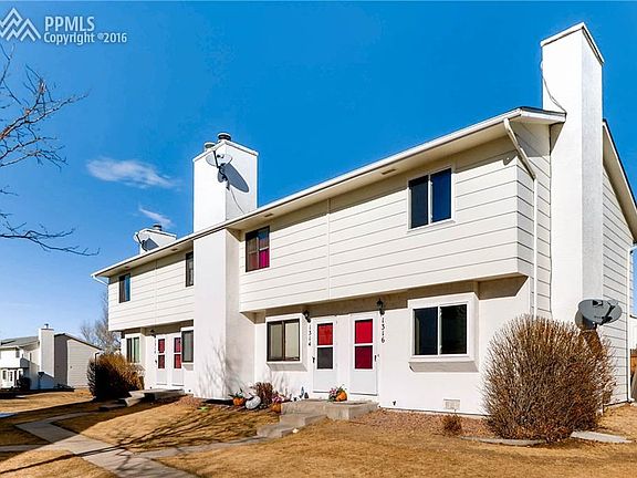Charming townhome in move-in condition. Conveniently located near shopping, schools and easy commute to Ft Carson or Peterson. Open floor plan, great room with wood burning fireplace, walk-out dining area, main level powder room, two upper level bedrooms and a laundry room and a private fenced in patio with storage room. Don't miss this one!