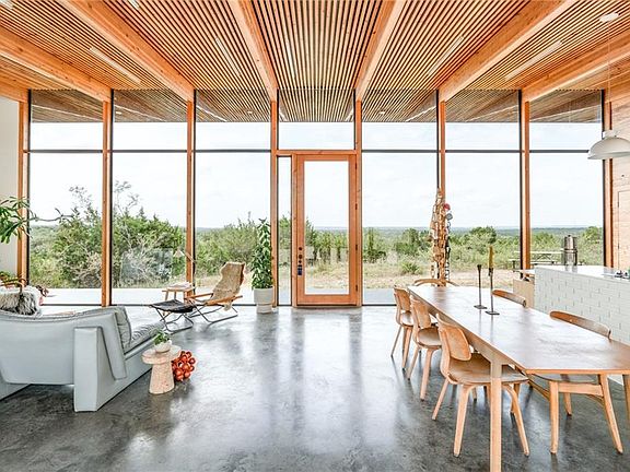 Straddling a hilltop near the Pedernales River, this home offers wide-open views of the Texas Hill Country. Adhering to a minimalism aesthetic, the home is designed around a stunning glassed-in communal space that encompasses the kitchen, dining, and living room. This remarkable property has been showcased in numerous publications, including Domino Magazine & Design within Reach, to name a few. The five-acre home site offers ultimate privacy. Access to boat ramp & zoned to Lake Travis ISD.