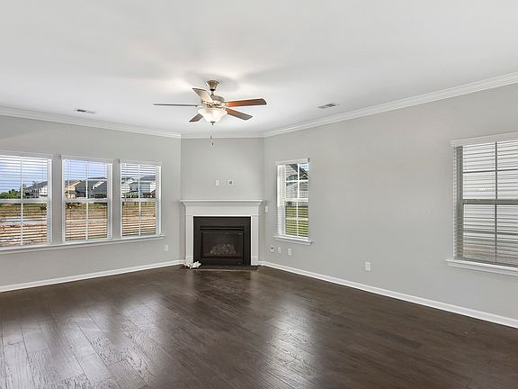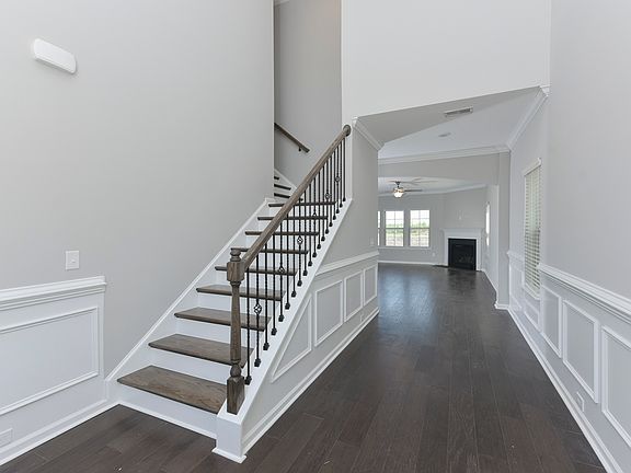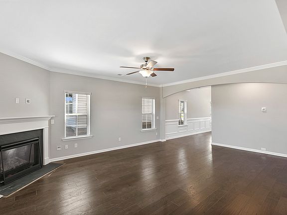 This three car garage sports stone around the elevation. Enter the large two story foyer with hallway and beautiful hardwood staircase, handrail and metal spindles. Head into the family room where this home will look like a showroom with its open floor plan, open to dining room and kitchen. Natural gas fireplace and upgraded hardwood flooring in the family room plus crown molding throughout the living areas downstairs. Dining room has a coffered ceiling and butler's pantry with glass doors and upgraded countertop. Kitchen large with two islands to sit at! Stainless steel appliance package, thick Silver Frost granite in kitchen and butler's pantry. Guest suite on the first floor with full bath and private access. One of the best upstairs offered, there are three full baths and a nice loft! We have a large master suite with his and hers closets, boxed ceiling, separate vanities, drop in tub with seperate fiberglass pan shower and tile deck and surround and tile flooring. Walk in closets in all the bedrooms. Large laundry room with extra cabinets above and below countertop. Don't forget the outdoor space, 14x10 covered patio with ceiling fan and additional 10x12 patio off covered area.