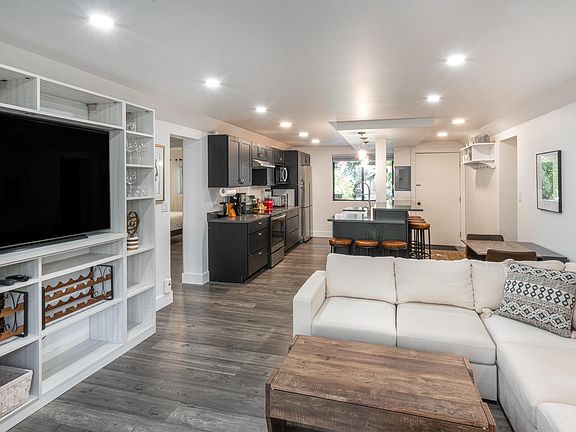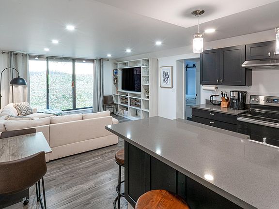 This beautifully remodeled Hunter Creek Condo has 3 bedrooms and 2 bathrooms. It is located on the ground floor and features a back patio that opens to a large lawn and trees. The condo is chic yet very inviting. The new black cabinetry and grey stone counters in the kitchen artfully contrast the bright white walls and neutral floor tone to create a cozy luxury feel, while the back patio invites in the private green space with views of Smuggler. The minimalist and efficient design allow the unit to feel spacious well beyond its 994 square feet. Situated directly across from the pool, hot tubs, and tennis courts, with mountain views right out the front door and trailheads a stone's throw away, this is indeed a retreat in the mountains! There is a parking space that comes with the unit, and if you want to take a bus into town, the shuttle is only 2 blocks away and drops you right at the base of Aspen Mountain.