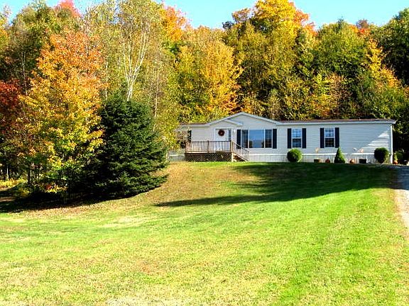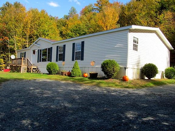 In a private country setting with 10+ acres land. A very well maintained manufactured home. Measuring 28x60, this home was built in 2004, is situated on a slab foundation and offers 3 bedrooms & 2 baths. Large open floor plan features a living-room with built in TV & surround sound speakers, eat-in kitchen with oak cabinetry, family room/den area and a master suite with garden tub & walk in closet. The land consists of a large amount of wooded acreage but offers a large front lawn and a spacious back deck that is great for cookouts and entertaining. Choice of heat with the oil hot air furnace, wood fireplace and efficient outdoor wood boiler (property available for $129,900 without the outdoor boiler). This Coventry location offers country surroundings, affordable taxes, no zoning restrictions and much more. FHA financing options available on this property for up to a 30 year loan with only 3.5% down-payment - call for more details. MLS 4318539 Listed at $136,000.