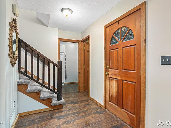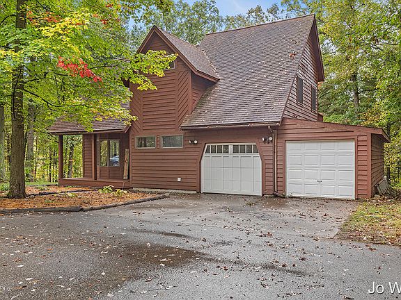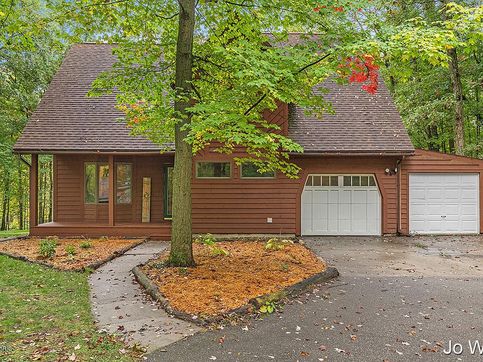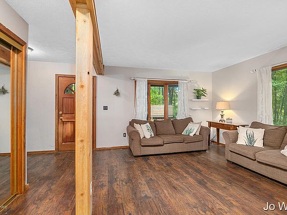 Don't miss out on this charming contemporary home nestled off the road on 11 wooded acres accompanied by wildlife, mature trees, and two streams! This 3 bedroom 3 bath home boast many features including cathedral ceilings, updated flooring, wooden siding, lots of windows for natural lighting, and much more! This home comes with a 2 stall attached garage that leads into an open floor plan with main floor laundry, and a half bath. The kitchen has lots of cabinet space and a wonderful view to the backyard. Upstairs you will find the master bedroom with plenty of closet space, and a master bathroom with Sky lighting, and an additional second bedroom. The basement is totally brand new with carpet, paint, and drywall. Newer utilities along with a walkout that leads to a fenced in backward with great views of the forest! This is a great opportunity to own a home that has the country feel but yet only 25 minutes away from downtown Grand Rapids, and much more!