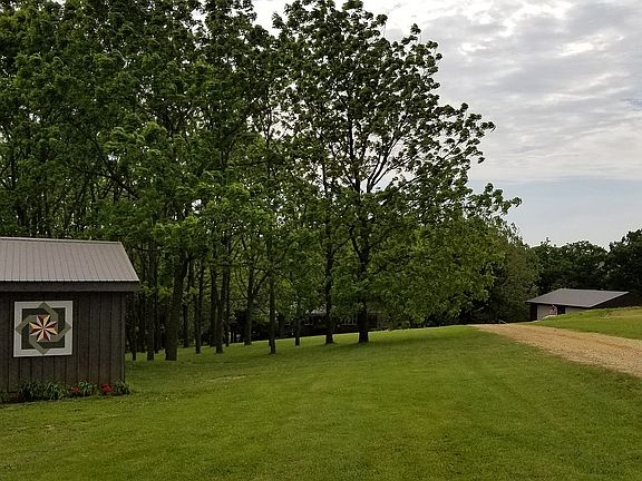 Very private and beautiful setting with 6 acres partially wooded and partially tillable with lots of room for storage or animals and toys with an attached garage, new pole shed, and 2nd detached garage. View of the valley with running stream from the walkout basement onto the back porch.