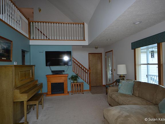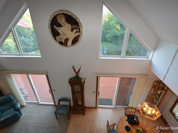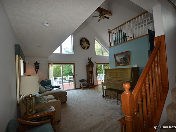 Priced under appraisal!! A covered front porch ( 6 x 24) that extends to an expansive deck ( 14x 34) is perfect for enjoying 3.12 acres w pond this 1 1/2 story, 4 bedroom, 4 bath home is nestled on. The attached 2 stall garage (24 x 26) & two outbuildings give lots of space for storage. The vaulted ceilings in the living room/ dining area feature sliders & trapezoid windows to leverage the view of the pond & wildlife. The kitchen features ''instant hot water'' & ample cupboard space ; dining area lie open to the great room for comfortable entertaining. Upstairs is the master bedroom, loft & private bath. Main floor there are 2 additional bedrooms, a main floor utility, & a full bath. The walk out level features a family room w gas fireplace, 4th bedroom, & workshop.