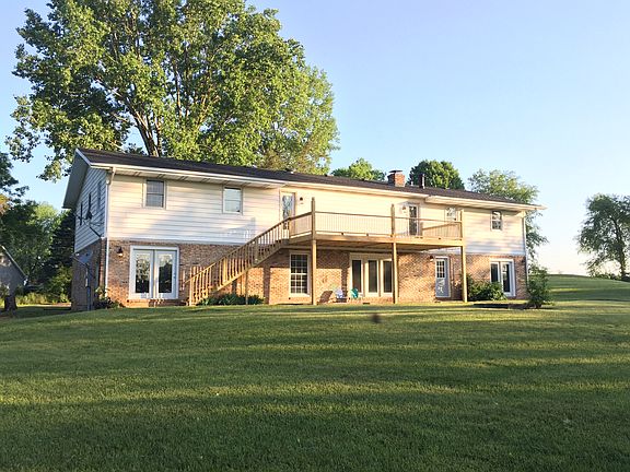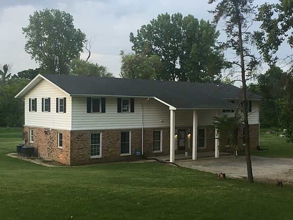 WOW!! Country estate sitting on over 5 1/2 acres with 7 bedrooms, 3 1/2 baths. This brick 2 story home has been totally updated. Large master suite with beautiful bath and huge walk in plus a double closet. Gorgeous kitchen with ceramic plank flooring and nice countertops. Formal living room and dining room. Large family room with fireplace. 2 bedroooms on lower level with new bath and bonus room with separate entrance. Fantastic view from upper deck overlooking property with shallow pond. Detached 40x24 garage and chicken coop. New paint. Fantastic home for the growing family.