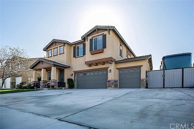 Stunning Two Story Eastvale Home With RV Parking! Upon entering there's a very spacious living room offering plush carpet, recessed lighting, high ceilings, and large windows creating great natural light. Just past the stairs leads you towards a sizeable living room, with an open concept to the kitchen. The living room also offers plush carpet, a gas fireplace and upgraded ceiling fan. As you approach the kitchen, you will notice beautiful mahogany cabinets, topped with granite counters and stainless appliances. The walk in pantry is substantial in size, and the kitchen island has plenty of counter space, for those large family gatherings. Other amenities downstairs include an office, which could be used as a fourth bedroom; and ¾ bathroom presenting a single sink vanity, shower, and linen cabinets. As you walk upstairs, you will appreciate the open floor plan including a huge loft, and custom wet bar. The master bedroom is capacious also offering a master bathroom with a shower, bathtub, double sink vanity, and walk in closet. The closet was custom built offering storage for shoes, purses and clothing. The backyard was recently designed and upgraded with artificial turf, new cement, and gates providing the home with RV access. All footings where properly installed when the cement was completed, including plumbing, data, gas, and electrical for your future outdoor kitchen. Just complete the vision, install your dream outdoor kitchen, and start entertaining your favorite guest