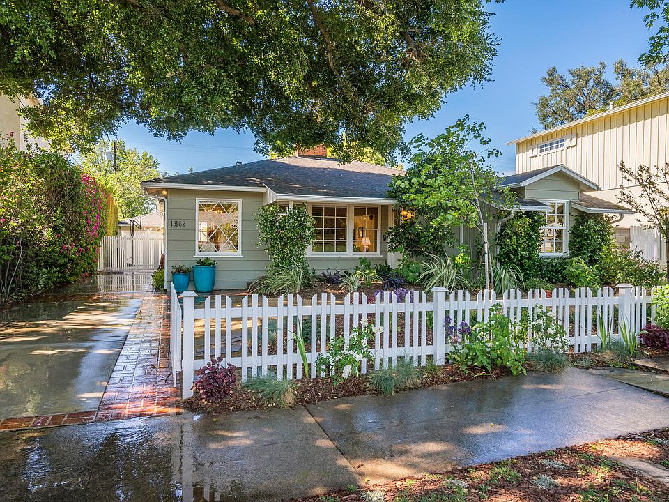 This lovely Hidden Woods ranch home is located on one of the most desirable neighborhoods in Sherman Oaks. Featuring a light + bright floorplan with gleaming hardwood floors, 9 foot ceilings, French doors, 2 fireplaces, large living room with dining, plus a remodeled kitchen with marble countertops, oversized farm style sink, custom cabinetry and fixtures, Vintage O Keefe and Merritt stove and updated appliances that opens to a spacious family room. Luxurious master suite has large walk in custom closet, French doors and a beautifully appointed bath suite w/marble counters, dual sinks, walk in shower + separate claw foot tub. Entertain in style in the lush private rear yard w/patio and garden. The white picket fencing, new native landscaping, raised garden beds and large play area give this wonderful home great charm, curb appeal + privacy.