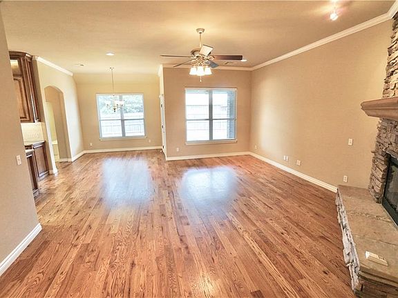 Immaculate, custom home in Choctaw Schools. Wheelchair/handicap access with no steps and wide hallways etc. Custom real wood floors. Kitchen features movable island w/ storage, quartz countertops, custom cabinets, dishwasher, refrigerator, gas range and good-sized pantry. Plenty of options w/ a study or formal living. Guests will have access to the half bath off the entryway. Refrigerator, washer and dryer stay. The laundry room w/ storage & sink leads to the master closet with features 3 built ins drawers, storage chest, & linen storage & ironing board. Master bathroom has walk-in shower, whirlpool tub and double vanities. There is a WALK IN SAFE ROOM off the master bedroom w/ built in storage Front bedroom has double closets & ceiling fan. Three car garage has epoxy floors and water softener. Stained concrete on the back patio for outdoor enjoyment. Extras galore in this custom beauty.