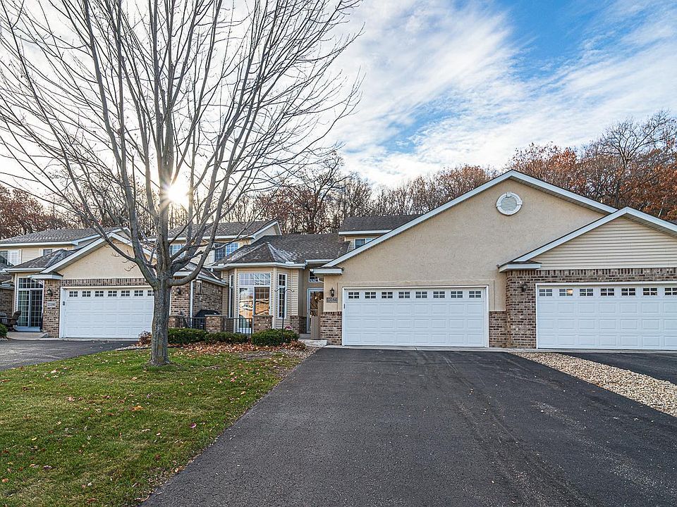 All primary living facilities are on one level in this VERY PRIVATE, former model townhome on a quiet street backing to the bluffs of Savage! The kitchen has 42” maple cabinetry, granite counters and lighted cabinets in the bayed dinette. Vaulted ceilings run through the kitchen and living room, which has a gas fireplace and adjoins an open concept 4-season sunroom with wooded views! The primary suite has a walk-in closet and dual sink bath. The upper level offers a loft + guest suite with a private bath and walk-in closet. Downstairs, you’ll find an inviting family room with a gas fireplace, an amusement area, bedroom, FULL BATH, and finished storage space. Additional features include solid-panel doors, upgraded flooring and newer carpet, new window treatments, a new composite deck, new water heater/softener, new toilets/faucets, and new kitchen and laundry appliances. You’ll love the quiet serenity that this community has to offer, with a natural setting just out your windows.