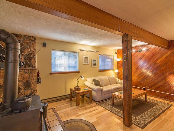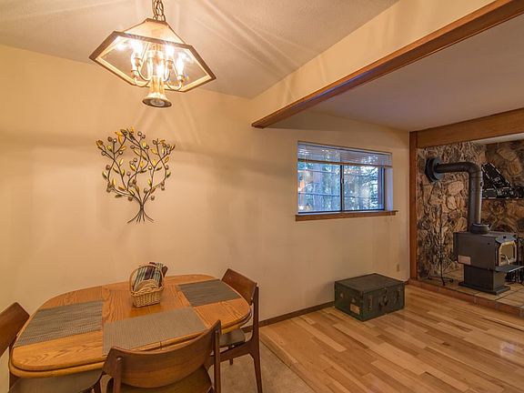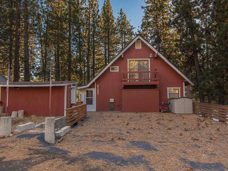 Donner Lake home with so many possibilities! Nice filtered lake views, easy winter access with level parking and covered entryway. Main level with galley kitchen, dining area, bedroom, full bath and living area with cozy woodstove. Downstairs are two bedrooms, full bath, spacious family room with gas stove and large deck facing the lake - perfect for relaxing and barbequing. Upstairs is loft bedroom and office, half bath. Extra storage in shed and under the house. Close to town and steps from Donner Lake!!