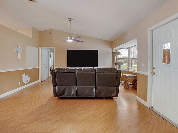 One Owner Home! 3 bedroom 2 bath CBS pool home on beautifully manicured 1.15 acre lot plus 40 x 40 CBS detached garage. Detached garage has AC ducts if you want to add AC. The home needs some TLC but has great bones. The kitchen is updated with stainless steel appliances , beautiful updated cabinets, granite counters and decorative backsplash. Master bath and guest bath have been updated with granite counters. Master bath is a cabana bath. Screened in pool area is 27x51 & pool is Pebble Tech finish. Per owner complete panel hurricane shutters for home, roll up door on detached garage hurricane rated. Roof 2004, Wtr Htr 3 yrs, AC 11 yrs, pool & wtr sys pumps approx. 2 yrs. Extra well on property for Irrigation, Riding lawnmower & extra refrig in garage stay with the property.