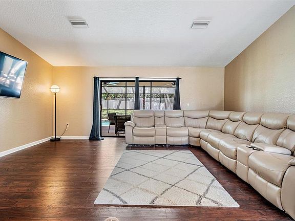 Welcome home to this beautifully maintained, MOVE IN READY 3 bedroom, 2 bath custom home in upscale East Linden Estates. You will love the OVERSIZED yard and PRIVACY that comes with living on a .65 acre lot along with the shaded driveway, and mature trees surrounding this home. The landscaping has been recently updated and will make you feel immediately welcomed, along with the freshly painted exterior. When you enter your new home you will fall in love with the SPLIT FLOOR PLAN, providing convenient privacy for guests along with the remodeled secondary bathroom. Enjoy your spacious floor plan which provides two living spaces, easily create a formal living room or a cozy den around the fireplace. The kitchen has freshly RE-PAINTED CABINETS and lovely GRANITE countertops. The eat in kitchen and formal dining space provide plenty of options for entertaining. The primary suite is luxurious and spacious with an additional seating area or office space, and a PRIVATE entrance to the lanai. Enjoy Florida summers with your SPARKLING POOL, and throughout the entire year you will love the large backyard. The mature trees provide plenty of shade, and the backyard is fully fenced for privacy and pets. Roof was installed in 2017, all pool equipment conveys and the pool vacuum is new as of 2024.The entire exterior was painted in 2024, interior was recently repainted as well, and the AC blower motor was replaced in 2024. Tension spring in garage door was recently replaced. The birdcage was recently re-screened and the well pump and pressure switch were replaced in 2025. New 7" structural rain gutters are being added to the home August 2025. SCHEDULE YOUR PRIVATE SHOWING TODAY!