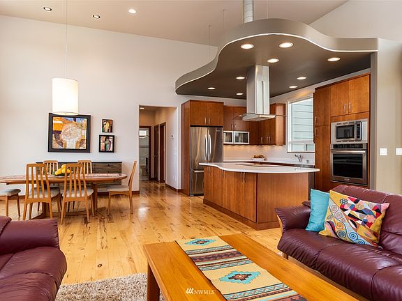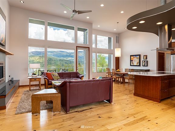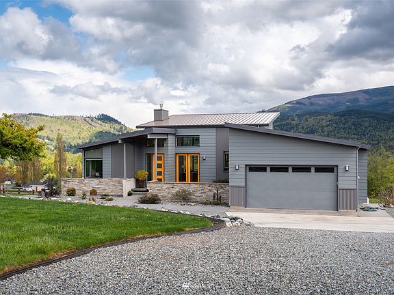 Mid-century modern custom home has panoramic mountain, sky and lake views. You will enjoy the many design details and beautiful craftmanship of this light-filled home. Separate lower level living area has its own entrance and a one car garage; upper level has a two car garage. Large deck overlooks the lake and a cozy courtyard is tucked next to french doors in the front. Located in Clear Lake, you have the benefit of country loving and great neighbors as well as being only 12 minutes from I-5, Mount Vernon, Burlington and a short 5 minutes from Sedro Woolley.