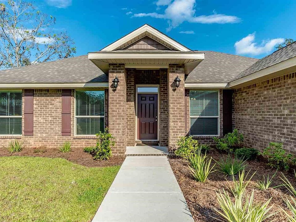 Do you want a new home and want it today? This nearly NEW home was purchased as a temporary residence and has barely been lived in. No nail holes, some rooms not even used. Move in ready home that can be a quick purchase. This Foley area subdivision was developed in a pecan orchard and this lot even has its own pecan trees. The neighborhood takes you back to a time where neighbors welcome newcomers... maybe even with a cake or pie! This home sits on a cul-de-sac lot and is the only 1860 square foot plan currently available in Ashland Place. It features a split floor plan with 3 bedrooms PLUS an office! The vaulted ceiling and floor plan in the great room, dining room, breakfast nook and kitchen provides for an open feeling with lots of natural light. The master bedroom has tray ceiling with ceiling fan.The master bathroom has separate closets, 2 vanities, garden tub and separate shower! The office is an adjoining room off of the great room area with a window that overlooks the front yard. Other features are garage door opener, blinds on all windows, and fabric window shields for protection during storms!