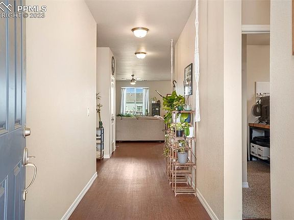 Welcome to this charming 3-bedroom, 2-bathroom home nestled in the highly sought-after Meridian Ranch neighborhood. With its inviting curb appeal and thoughtful design, this residence offers the ideal space. Conveniently situated in close proximity to Falcon High School and Meridian Ranch Elementary, this home is a haven for educational opportunities, catering to the needs of both growing minds and busy parents. One of the standout features of this property is its easy access to the Meridian Ranch Recreation Center, elevating the concept of community living to new heights. Indulge in a plethora of amenities that are sure to cater to every family member's interests. Dive into the heated indoor pool for year-round aquatic enjoyment, or bask in the sun by the outdoor pool during the warmer months. The little ones will delight in the exciting water activities designed just for them. For those seeking an active lifestyle, the well-equipped gym offers a range of exercise options, while the basketball courts provide a space to practice that perfect shot. Unwind and rejuvenate in the steam room after a fulfilling workout session. Surrounded by parks, trails, and open spaces, this residence invites you to explore the beauty of nature right at your doorstep. Whether you're taking an evening stroll through the neighborhood, enjoying a leisurely bike ride, or simply relishing the serenity of the outdoors, this location offers the perfect balance between suburban living and the great outdoors.