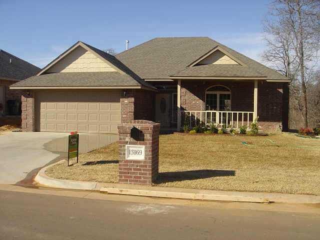 New Home in Midwest City's hottest new sub division. Home has view of pond from living room, kitchen, patio. Features builtin entertainment center over fireplace, oak wood, solid counter tops, breakfast bar, pantry, master bath suite w/whirlpool tub and tile shower, extra large master closet w/ches