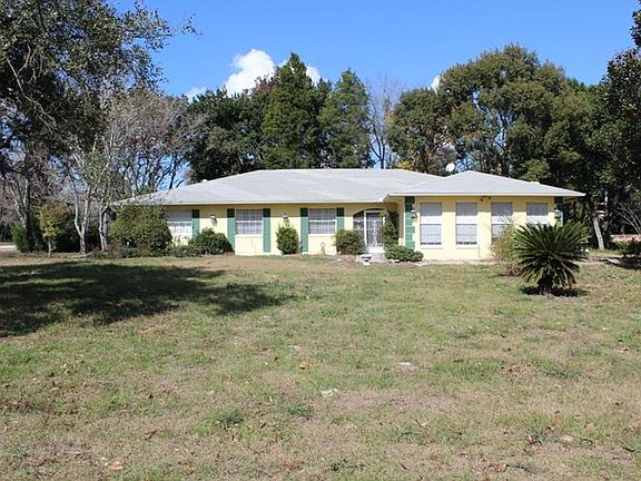 You'll enjoy this spacious 3 bedroom, 3 bath, 2 car garage over sized garage pool home that sits on over 1 acre. Home features include: Nice open floor plan with 2170 sq. ft of living area, living room/dining room combo, family with including with wood burning fireplace, separate eat in area, AC in 2006 (per county records), large bedrooms with 2 master suites, split plan, walk in closets, sliders and French doors that lead to over sized lanai that's great for entertaining, double door entry, inside utility with cabinets for storage, dual sinks in master, security system, large corner lot, sprinklers on well but are currently in need of repair (not warrantied), new exterior paint, some new screens in lanai, laminate and tile, shed, fruit trees, extended driveway. Conveniently located to shopping, schools and all major conveniences. Sold "AS IS" for seller's convenience. Room sizes are approximate and should be verified by buyer. This home is priced with the consideration that carpets needs to be replaced, interior paint and some updating needs to be done. Washer and dryer DO NOT convey. Seller is in the process of having pool emptied and cleaned.