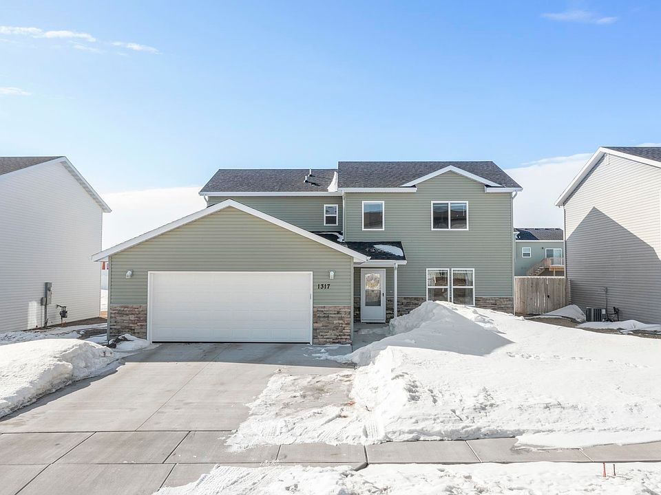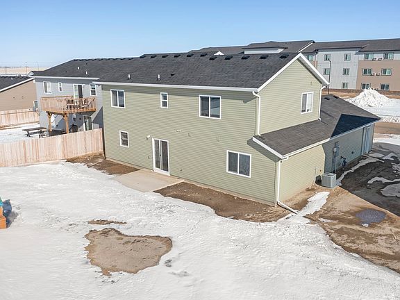 Take a look at this modern 2-story house featuring 4 bedrooms, 2.5 baths and a heated double garage. The main floor is an open concept with a large living room, dining room and a beautiful kitchen. The kitchen features SS appliances, a pantry and an eat-in island. A walk-out patio off the dining area can be a peaceful retreat or a place to gather with family and friends. The large master bedroom features a walk-in closet and an en-suite bathroom and is conveniently located on the main floor. A mudroom with 1/2 bath located off the two-stall heated garage. Upstairs you will find 3 large bedrooms, a spacious family room, a full bath and a laundry room. This home is close to schools, shopping, food and easy access to MAFB. White vinyl fence will be installed by the end of April mid-May, weather permitting.