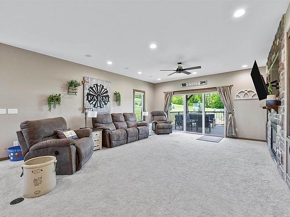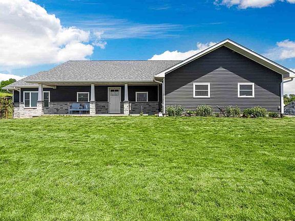 Country living at its finest! Welcome home to this like-brand-new ranch on 1.76 acres! The open floor plan features a spacious great room with 9ft ceilings, electric fireplace, and built-ins. Stunning kitchen with LVP floors, granite countertops, upgraded cabinetry, large island, breakfast bar, stainless steel appliances, double oven, gas cooktop, and large dining area. Convenient main level laundry room with utility sink. Main level drop zone with lockers. Spacious Primary Suite with walk-in tile shower with pebble floor, tile floors, granite-topped dual vanity, and walk-in closet. Secondary bedroom/office with double closets and another full bathroom completes the main level. The lower level features stained concrete floors with in-floor heating! Spacious rec room with wet bar. Two additional bedrooms, another full bathroom, two finished bonus rooms, and plenty of storage space completes the lower level. Fabulous heated 3-car garage with floor drains, a dog wash station, and a 2nd set of washer/dryer hookups. Beautiful covered deck and large patio with hookup for a hot tub to enjoy those summer nights! Other updates/features you’ll appreciate: whole house generator, in-floor heat, solid-core doors, new roof, and so much more! Don’t miss your chance to own this private, beautiful acreage!