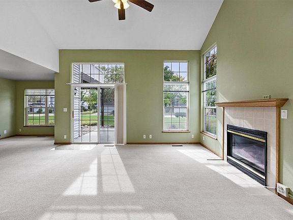 Experience the convenience and charm of this rare, zero-entry, end unit, one-story condo on the NE side! This beautifully designed 2-bedroom, 2-bathroom home features stunning vaulted ceilings with a wall of windows that flood the space with natural light. The attached 2-car garage includes an adjacent parking pad for guests and boasts an upgraded epoxy floor. Inside, you'll love the warmth of the gas fireplace for those cozy winter nights, and the elegance of oak hardwood floors. The kitchen comes complete with stainless steel appliances (except microwave), a walk-in pantry, formal dining space and convenient in-unit laundry. Step out onto the inviting patio, perfect for enjoying crisp fall evenings. Pet-friendly with up to two cats or one dog (max weight approx. 25 lbs). Don’t miss this exceptional opportunity for comfortable, one-level living in a highly desirable location!
