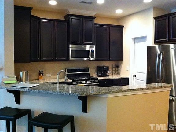 Popular Grace Park! Walk to all of your favorite shops and restaurants. This beautiful townhome includes spacious 3 bedrooms + loft, 2.5 bath, granite tops, upgraded 5" hardwood floors & cabinets, gas fireplace, SS appliances, tile backsplash, 2 car garage. Luxurious master suite includes tray ceiling, double vanity, garden tub, separate shower, walk-in closet and balcony. Washer, dryer & refrigerator included. Excellent schools. Minutes to RTP, I-40, I-540. Available 5/1! No smoking. Owner pays for HOA, Tenant responsible for gas, electricity and water. Contact by text or email is preferred.