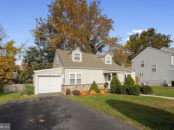Beautiful well maintained 3 bedroom Cape with 2 full baths. The 1st floor features a large living room, a nice size kitchen with a separate eating area. New luzury vinyl plank flooring through out the living room, dining area & kitchen. Sliding doors leading out to a large covered deck overlooking a new fenced in backyard with hardscape terracing & patio. Large 1st floor primary bedroom, with plenty of closet space, full hall bath with a tub. 2nd floor features 2 spacious carpeted bedrooms with plenty of natural light & extra storage in the eaves. Finished basement with a custom bar & small refrigerator, full bath with a shower, separate laundry area & office/storage area. Access to back yard from basement, 1 car garage, parking in the driveway 4 cars. Dimensional shingled roof 2016 (Under Warranty) Hot Water Heater 2018 & basement sump pump. Complete HVAC Service 9/30/22, Updated vinyl windows. Convenient to Airport, I-95 & I-476 Don't miss this opportunity make this your new home.