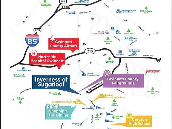 Luxury Townhomes. Under construction! Inverness at Sugarloaf in Lawrenceville is in a prime location in Gwinnett in the well garnered Grayson High school district. Located off Sugarloaf Parkway just across from Gwinnett fairgrounds where you will be filled with tons of Festivals & Fun Activities. Minutes to GA-20, Hwy 124 and Hwy 316, for great shopping plus beautiful parks. Local dining and unlimited shopping minutes away. These low maintenance townhomes feature 2-car garage and will offer 3-bedroom and even 4-bedroom plans, each designed for the way you live. The open concept main level includes an open kitchen and family room while bedrooms upstairs give you privacy and a place to retreat. You will never be too far from home with Home Is Connected at Your new home. Our homes are built with an industry leading suite of smart home products that keep you connected with the people and place you value most.