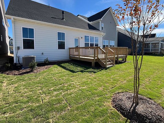 This Brand New, Main Level Primary Bedroom Declan is Ready for move in! As you step into the foyer, you'll be drawn to the heart of the home: the kitchen. This central hub, featuring a large eating bar island, is equipped with a gourmet stainless steel appliance package, including a hood vent, chic white cabinetry, and a modern chrome pull-down faucet. The kitchen opens up to the dining room and a bright great room, which is adorned with additional windows and a beautiful fireplace with a mantle and Artic Grey surround. Just off the great room, you'll find a wooden deck, ideal for extending your outdoor living space. The main level also includes the primary bedroom, situated at the back of the home. This spacious retreat comes with a large walk-in closet and an en suite bathroom featuring upgraded fixtures. Upstairs, the oak stairs lead you to a generous extended loft, two secondary bedrooms with large walk-in closets, a dedicated office space, and a finished storage area. This thoughtfully designed upper level ensures you have all the space you need in this beautiful community. Located in Wendell Falls, an amenities filled community with pools, trails and so much more! Ask about special financing options and closing costs!