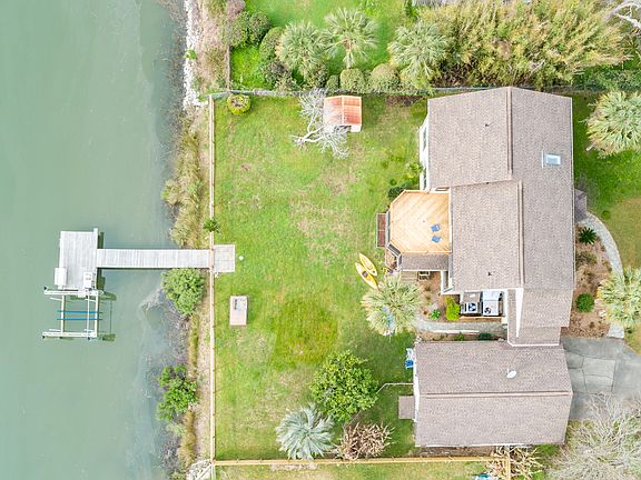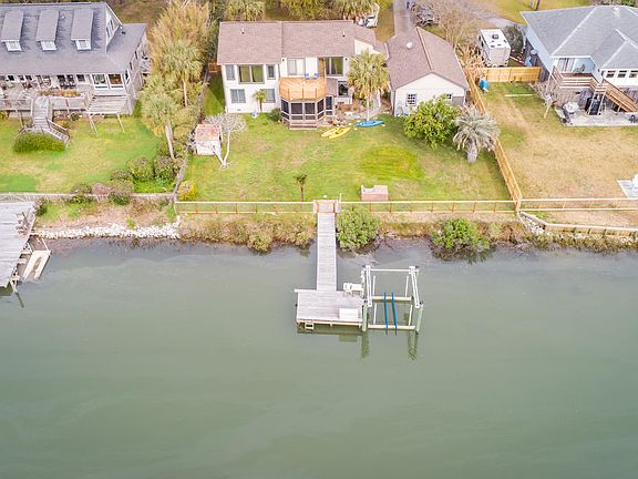 Amazing views on a tidal creek in this beautiful spacious home on James Island! Relax on the dock, which includes a boat lift, running water, and ladder down to the water. Enjoy the incredible views of Morris Island Lighthouse, the marsh, and beautiful wildlife. Custom kitchen with granite, tons of beautiful cabinets, including appliance lift, pull outs, pantry, under cabinet lighting, bar cabinet, and built in ice maker. Dual masters with one on the main level and a huge master suite upstairs with cathedral ceiling and enormous windows facing the water. New attractive deck on the upper level to relax and enjoy the view. Upstairs is also a large loft area bonus room, with a half bath, which makes a perfect game room or second living area. The guest bedroom is on the main level. Attractive screened porch for hosting and oversized 2 car garage with workshop area, and hobby room.