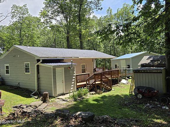 Fantastic opportunity in the heart of the Pocono Mountains! Perfect property for a handy buyer or Investment opportunity!Tucked away on a generously sized, wooded parcel, this property offers privacy, potential, and plenty of space to create your dream setup. With no HOA restrictions, you're free to bring your vision to life. Multiple outbuildings, including several sheds and a massive two-bay workshop/garage, make this ideal for hobbyists, mechanics, or those seeking extra storage. Whether you're looking for a hands-on project or a smart investment with room to grow, this unique property is full of possibilities! More pictures to come, but go surprise yourself with the well kept interior!