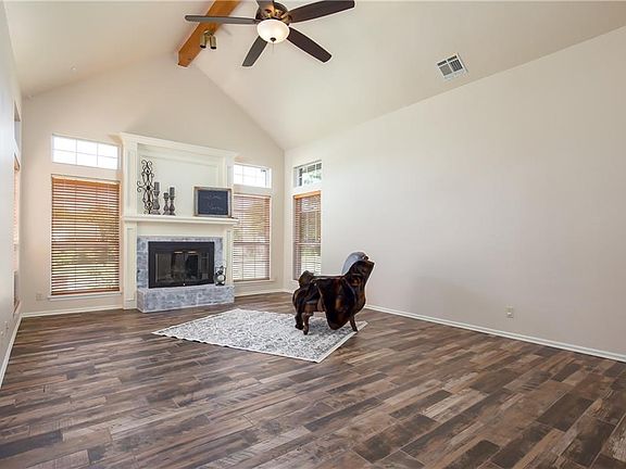 Welcome home! Great open floor plan remodel! Kitchen is very open, gas cook top put in 2016, huge island/bar, granite counter tops, white cabinets, beautiful tile back splash, and large pantry. New remote controlled gas fireplace insert 2016. Gorgeous newer wood-look tile floor in all areas except bedrooms. New lighting and ceiling fans, new exterior paint. New duct work, heating and air in 2013. Toilets replaced. New garage doors. Large Florida room with lots of windows makes a great playroom, exercise room, or office with heat and air. Patio extended in 2014.Spacious backyard with covered patio and fruit trees. Front and back sprinkler system. Neighborhood pool and park. Great location!