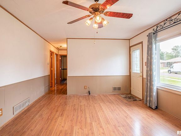 Well maintained 2-3 bedroom ranch home in Pekin. The nice size living room opens into the large kitchen with plenty of natural light, loads of cabinets and ample counterspace. Formal dining room originally was a 3rd bedroom, could be converted back by putting a door on it. Large 2 stall garage and 12x20 shed provides plenty of room storage or workshop. Enjoy the outdoor deck on those lazy summer afternoons. This home is great for a first time homebuyer or someone looking to downsize. Maintenance free living at its finest!