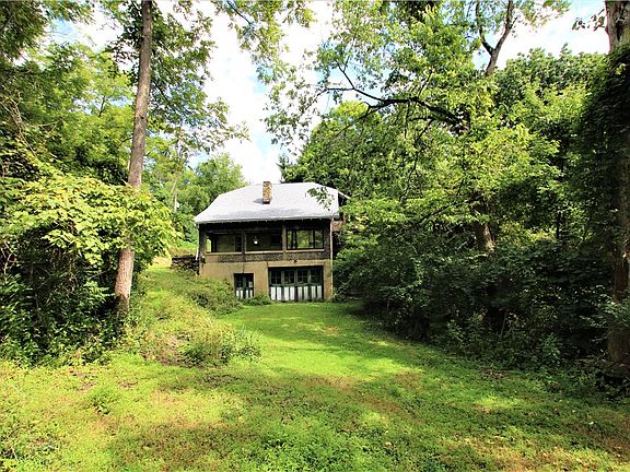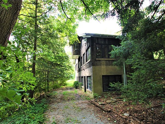 Rare opportunity to own a piece of history! This gorgeous home was built in 1925 and with some TLC can be restored to its classic beauty. Sitting at the end of a very private lane on an acre of woods, the house has a concrete exterior and lovely interior woodwork, with walls of windows, two side porches, 2 woodburning fireplaces. Five large bedrooms all on the second floor with a full bath, with access to attic and a cedar closet. The main floor includes the huge living room with gorgeous brick fireplace and side annex, two spacious entries, full dining room, a kitchen with attached breakfast nook, and a den/6th bedroom with exterior access. The lower level could be an amazing gameroom with another stone fireplace, a laundry with separate entrance, a garage, and two utility rooms. 7000+ gallon cistern. Newer roof and some windows.