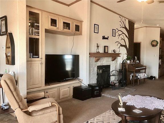 Super cute doublewide home that is permanently attached and currently has FHA loan on it!. Located at the end of a cul de sac on huge lot (1.08 acres) and fenced for nice privacy. Nice little front porch to enjoy your morning coffee! Some newer updates include newer hot water tank (2018), ) newer well pump (2017)and newer pressure tank (2018). Heat and air serviced every year! Roof repairs will be completed by closing. Spacious master suite is separate from other 2 bedrooms and features large bathroom with double sinks, soaker tub and separate shower. Cozy wood burning fireplace creates lovely ambiance in living area. Large laundry room at back of home. Convenient location with quick access to highways. Two separate storage sheds in backyard great for storage.