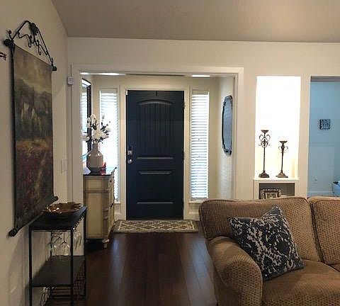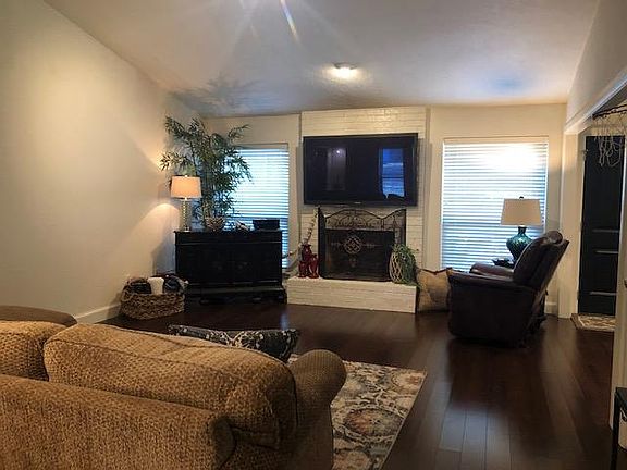 3BR 2BA Beautiful outside and inside. Light and bright colors on the inside. Beautiful updated home with hardwoods throughout home. Foyers leads you into the vaulted living room with fireplace. Updated kitchen with stainless steal appliances and modern cabinets. Quartz countertops and tile floor. Recessed lighting makes a wonderful kitchen. Utility room off kitchen. Master bedroom with ensuite and walk in closet. 2 Bedrooms with large closets. Hall bath with tile. Large patio off back of living room. Large back yard. Large 2 car garage. This is a no smoking home. 1 year lease with no utilities included