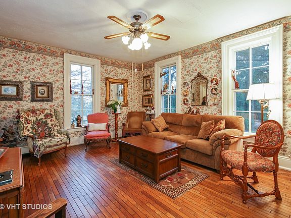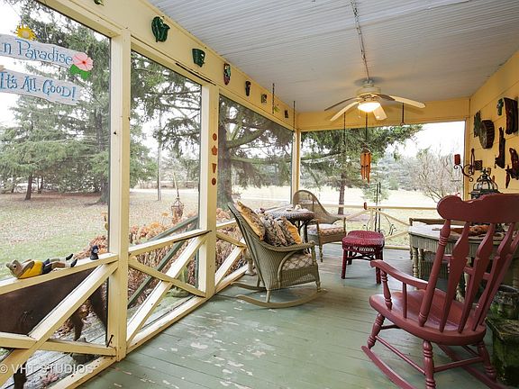 Authentic Gentlemen's Farm Built in 1842, with loads of history, has always been in the Family. The horse barn was built in 1906. This property now consists of 30 acres, (10 acres with home and outbuildings, app. 10 wooded with pond and above ground pool, and 10 tillable for your crops...something for everyone. Perfect home for growing family and is loaded with character and memories of the years gone by. Wonderful screened front porch that leads into the welcoming DR and Parlor/LR with French Doors and all hardwood floors downstairs. There is a 1st floor BR & Large Bath, a large country kitchen, and a combo FR/OFF/ 1st fl. laundry. Upstairs additional bedrooms, loft, a 2nd kitchen and full bath, with it's own electric and has laminate wood flooring, plus a 12 x 12 ext. deck. Exterior entrance to the basement has a well maintained stone foundation, a storm cellar, and a sauna. The house has 100 amp, & buildings 300 amp serv. Great location. Close to I-90, Metra, etc.