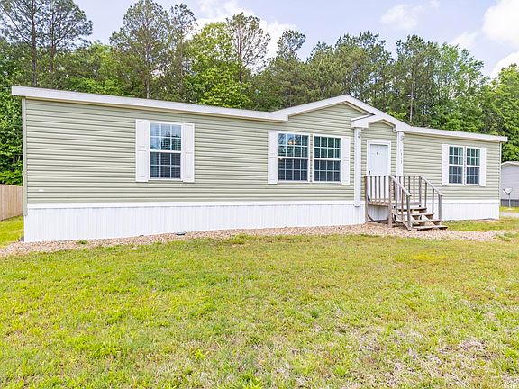 Nice mobile home located right outside of Benton in a quiet cup de sac. Features sheetrock walls and ceilings. Large open living, dining and kitchen. Custom built ins in living room. Large kitchen island with storage. Walk in closets in each bedroom. Large bathtub in primary suite. A/C heat pump with heat strips. 20x30 covered carport with concrete slab. Seller is offering up to $1000 flooring allowance.