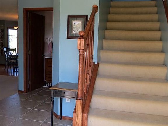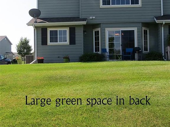 Wonderful end unit Town home with large green space for family fun. Main level is very open and includes: living room, dining, kitchen and 1/2 bath. Kitchen is well laid out with Dakota Kitchen custom cabinets and walk in pantry. When you are at the kitchen sink you can see out the window to the tree lined green space. Your entry area is nice in size with easy access to the insulated garage or the front entry. 2 nice sized bedrooms in the upper level and Master has walk in closet for storage and large window that lets in light. Full bath up with double sinks and linen closet is in the bath. Laundry is in the upper area making it easy to fold and put away your clothes! New water heater and garbage disposal. The 2 car garage has a wonderful shelving unit that stays, it has options to hang your bikes making storage easy. Utilities are low Mid American $37 mo and Excel highest was $70. HOA covers water, sewer, garbage, snow removal, lawn care with a sprinkler system, and exterior