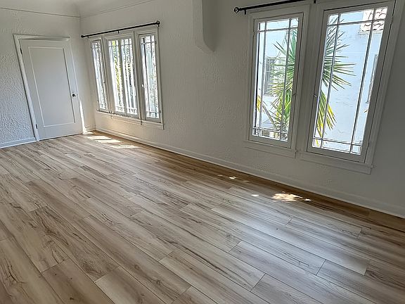 Discover modern comfort in this stunningly renovated apartment, nestled within a charming and historic West Hollywood building. This expansive 1-bedroom residence showcases brand-new laminate flooring, striking dark wood kitchen cabinetry, generous storage space, and a spacious walk-in closet in the bedroom. Experience the ease of central air conditioning and the added luxury of an in-unit washer and dryer.