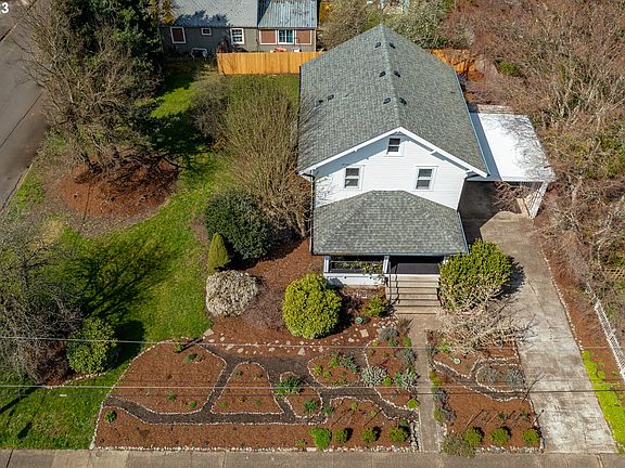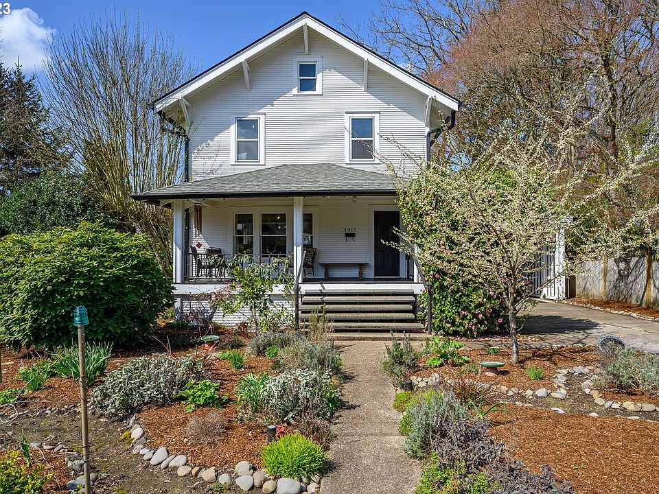 This beautiful Old Portland Style Farmhouse is situated on a prime quarter acre lot in a highly sought-after NW McMinnville neighborhood. As you step onto the large covered porch and into the home, you'll be greeted by high ceilings, built-ins, and picture moldings. The living room and formal dining areas feature beautifully refinished original wood floors and original built-ins, including a bench incorporated into the bay window. The functional kitchen is central to the home and boasts a new stove, faucet, breakfast dining area, and more built-ins. Upstairs, you'll find four spacious bedrooms, all with hardwood floors, solid doors, moldings, and high ceilings. Recent renovations seamlessly blend with the home's original charm, creating a comfortable and inviting atmosphere. Updates include new interior paint, light fixtures, flooring, counters, kitchen stove, and an enlarged main floor bathroom with double sinks and a tiled shower. Also - a newly waterproofed basement complete with a sump pump and french drain, newer hot water heater, new gutters, and a new section of backyard fence. Large back & side yards are perfect for gardening, playing, or entertaining and a two-car carport provides ample parking. 1 block to Memorial Elementary, and wonderful proximity to downtown McMinnville.