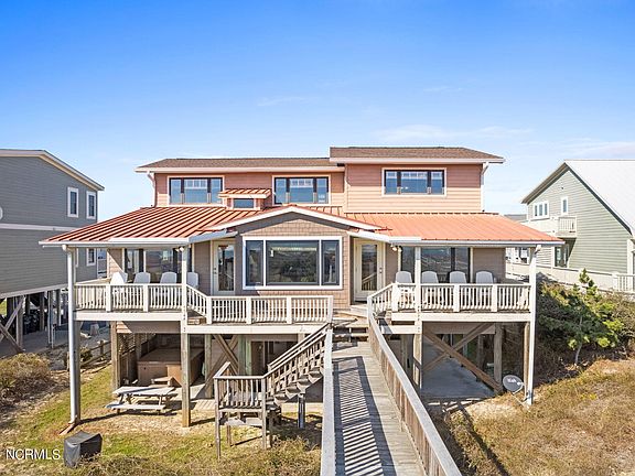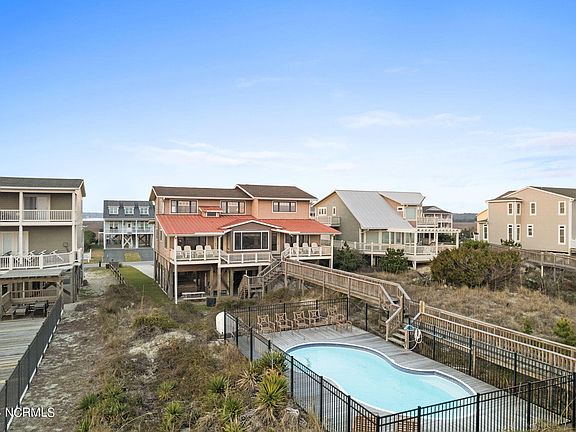 Experience unparalleled coastal living in this exquisite oceanfront beach home located on the exclusive west end of Holden Beach Island. Boasting breathtaking views of the Atlantic Ocean, this 6-bedroom, 6-bathroom property offers a luxurious retreat with wide beaches, rolling dunes, star gazing and comet watch areas. Upon entering through the private gate, you'll be captivated by this homes expansive lot featuring a refreshing pool and ample decking, perfect for soaking up the sun. Start your day with the sunrise and end it with stunning sunsets overlooking the pristine coastline and intracoastal waterway. Inside, the home exudes coastal elegance with a spacious open kitchen and dining area, ideal for entertaining guests. The generous living room features a game table and a fully equipped wet bar with a mini fridge and ice machine, adding convenience to your gatherings. With spacious bedrooms adorned with built-in seating areas and plenty of closet space, this home offers comfort and relaxation for both owners and guests. Additional amenities include two full-sized washers and dryers, 2 outside showers & 1 solar shower ensuring convenience for all. Step outside to the fabulous decks, offering panoramic views of the ocean, marsh, and Intracoastal Waterway. Indulge in relaxation at the large pool, above ground-hot tub, enclosed on three sides for added privacy. This well-established rental property on Holden Beach provides the perfect opportunity for investment or private enjoyment. Conveniently located near restaurants, shopping, and a boat ramp under the Holden Beach Bridge, you'll have everything you need for coastal living at its finest. Don't miss out on this rare opportunity to own a piece of paradise on Holden Beach known as ''one of the best family beaches in the county'' according to National Geographic Traveler Magazine.
