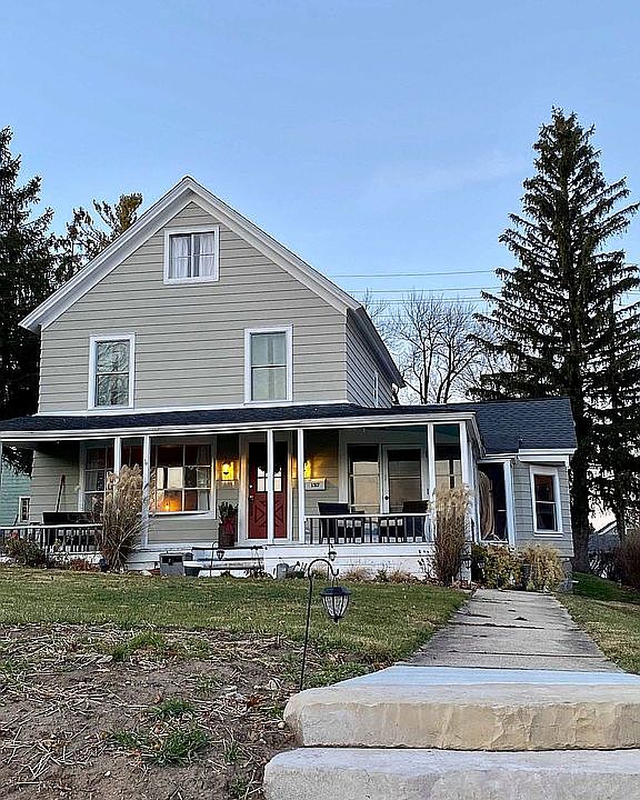 Meticulously updated Farm House rich in vintage charm throughout. within walking distance of downtown Lake Geneva. Situated on Classic Park Row. Large living room with bay window. Chef's grade kitchen with new cabinetry, counters, appliances, professional-range hood, fine fixtures and backsplash. Family room with gas fireplace + stone mantle and built-in desks for working from home/schooling. Large master bedroom with 2 closets. Third level bedroom and sitting area gives a place to to get away. Two fully remodeled bathrooms each with their own unique offerings. Relax in the soaking one day and step into the opulent tiled shower the next. An expansive front porch and 3 season room to enjoy the outdoors. 2.5 car garage and full unfinished basement offers plentiful storage space.
