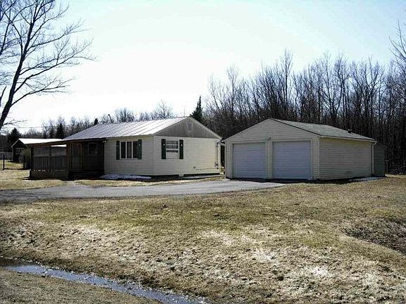 Features include 1 bedroom, his and her closets, 1 bathroom, living room with wood floors, pellet stove, monitor, dining room, kitchen with refrigerator, dishwasher, appliances included, electric range, laminate countertops, 2-car garage, metal roof.