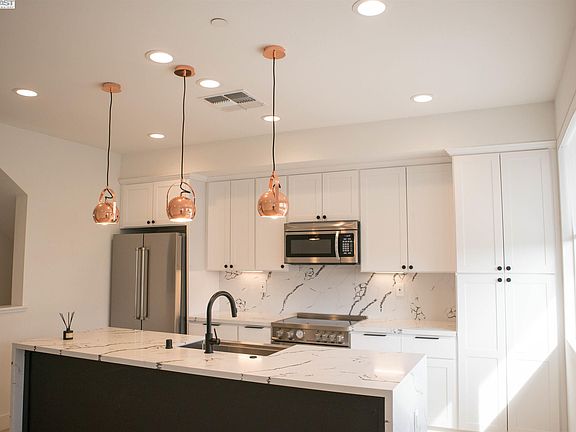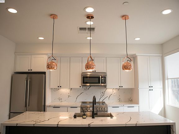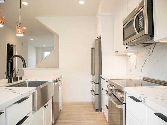 Modern solar powered all electric townhouse is part of the Station House South Community in bustling West Oakland. The 3 bedroom 3.5 bath unit with over 1750 sq. feet of living space features a fluid floor plan great for entertaining. Owners spared no expense in upgrades. Herringbone pattern hardwood floors throughout, gourmet kitchen with high end Bertazzoni stainless steel energy efficient appliances, solid wood cabinets and Calcutta Luna quartz counter tops and waterfall island. Upgraded tile flooring and showers in all bathrooms. Innovative CLEI sofa wall bed functions well on first floor bedroom which makes a perfect home office or a guest bedroom. Unit has one-car attached garage with additional driveway parking. Neighborhood is truly a commuters dream. Conveniently located minutes from West Oakland BART, Jack London Square, Uptown dining & entertainment and just footsteps away from the Bay Bridge, 580/80/880/24 Freeways. Quick stroll to renowned award winning HORN BBQ, KOWBIRD and local Farmers Market. Getting to San Francisco has never been easier! Pet friendly community with 5 pocket parks.