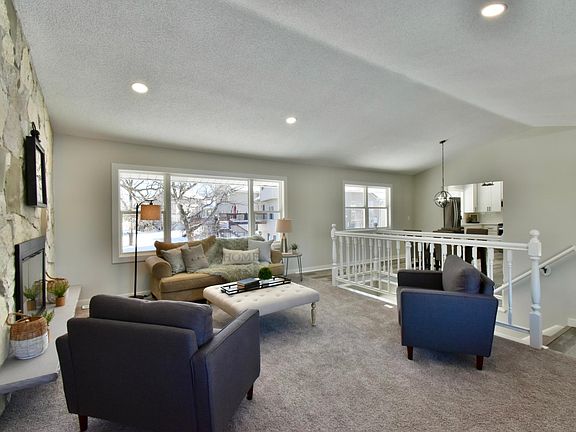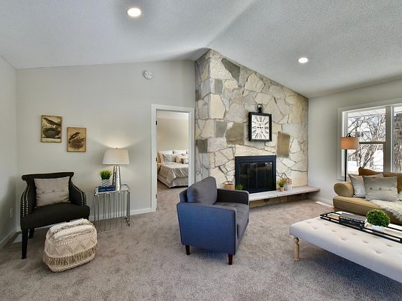 Come check out this spacious, beautifully updated move-in ready rambler on an over-sized corner lot! Step into this homes large main level living room with stone wood-burning fireplace and vaulted ceilings. Main level master-suite with walk-in closet and private 3/4 bath. Spacious kitchen with beautiful Quartz countertops, stainless steal appliances and plenty of space for entertaining with a deck right of the kitchen. Lower level feels as though it goes on forever! Two large family rooms, wood burning fireplace, wet bar with counter area, plus two more bedrooms and another bathroom. Walk-out to your large backyard and relax on the concrete patio during those beautiful Minnesota summer nights! This home has it all!