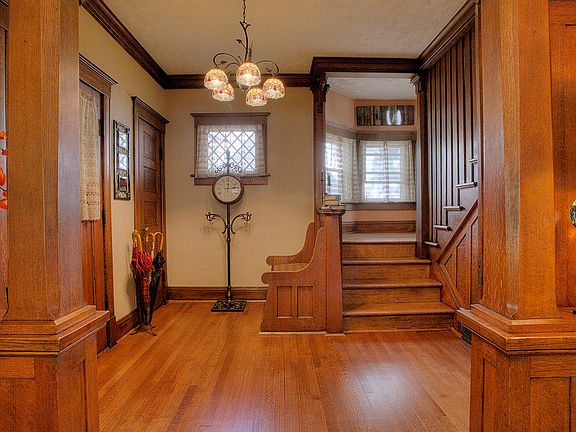All measurements approx. Call 402-630-2921to schedule a viewing. Beautiful 4 BR in the heart of the Historic Field Club Neighborhood. Best of both worlds with original features plus updated kitchen! Stained and leaded glass, oak floors and entry with built in bench, built in china cabinet, fireplace flanked by gossip benches, quarter sewn oak and french doors with beveled glass will impress all your guests when you entertain for the holidays!! Updated baths on main and second floor. Updated eat in kitchen open to family room. Kitchen with loads of cabinets, including pantry with pull out shelves and Corian® counters. Kitchen leads to patio and beautiful level backyard. Two car garage with side drive for plenty of off street parking. Second floor features bay window, 4 bedrooms and full bath. Large unfinished 3rd floor offers additional storage or could be finished into master suite. Finished lower level rec room.